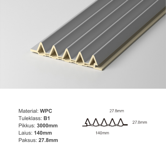 Ribipaneel 140 on inspireeritud geomeetriast, mille kolmnurksed profiilielemendid loovad eristuva ja modernse välimuse. Paneeli korduv sümmeetriline kuju toob ruumidesse ainulaadse visuaalse tekstuuri ja sügavuse.